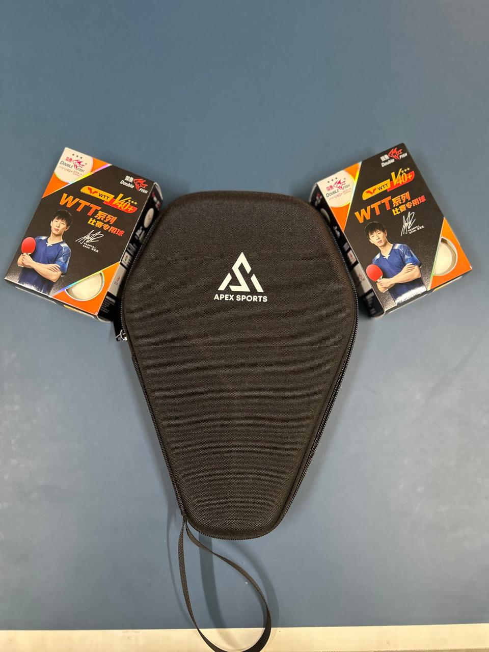 TT Racket Case and Double Fish WTT 40+ 3 Star Balls